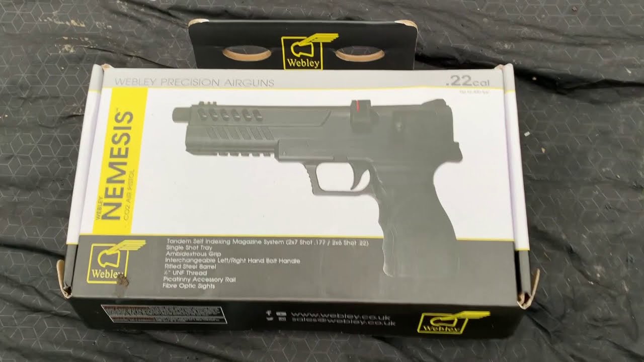 The Webley Nemesis Co2 Air Pistol Review and Unboxing I took the 0.22 Webley nemesis out for a test and here is the footage